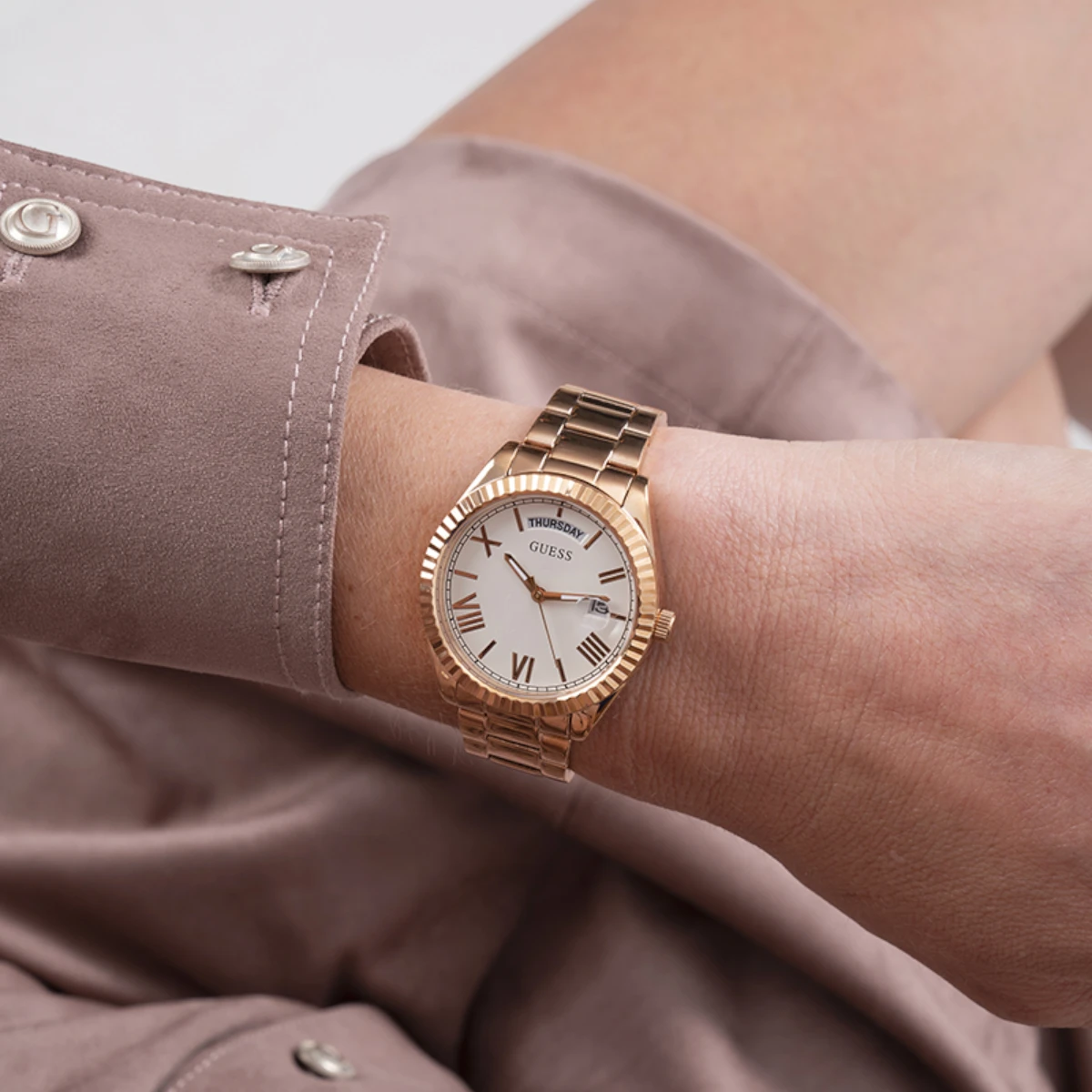 Guess Queen Roséguldstonad/Roséguldstonat stål 40 mm