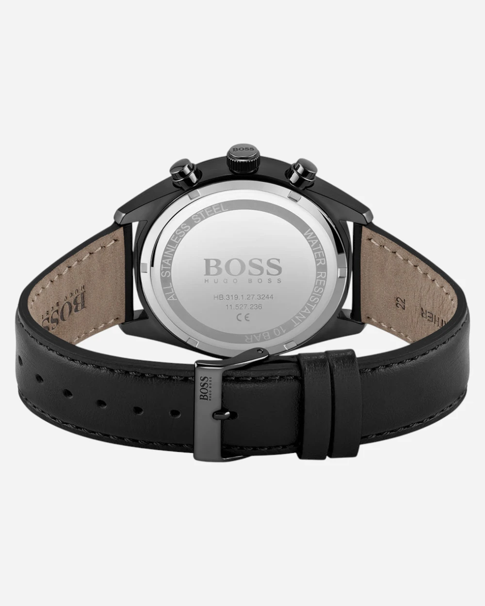 Hugo Boss Champion 1513880 är en sportig och elegant herrklocka med svart läderarmband och svart stålboett. Utrustad med kronograf, datumvisning och 10 ATM vattenskydd.