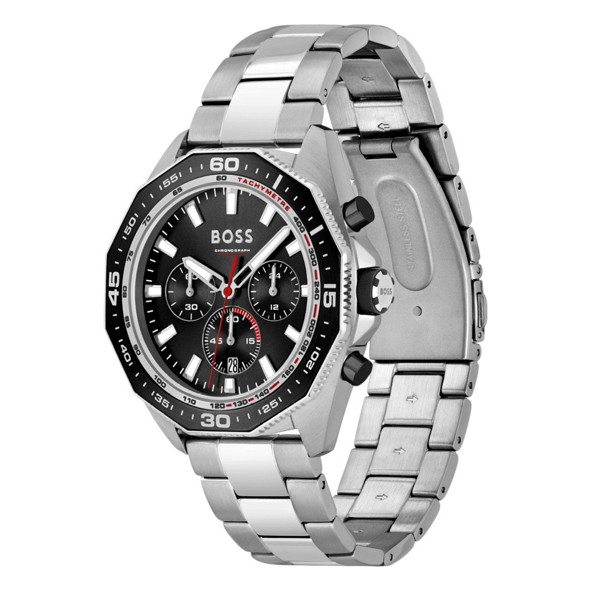 Hugo Boss Energy herrklocka är en kvartsdriven kronograf utvecklad för användare som söker en balanserad kombination av sportig funktion och modern stil i vardagen. Konstruktionen ger pålitlig tidhållning och lämpar sig väl för både arbete och fritid. Designen kännetecknas av en svart urtavla i samspel med boett och länk i rostfritt stål vilket ger ett kraftfullt och modernt uttryck. Helheten är lättavläst och funktionell med fokus på komfort och användbarhet. Som en del av Hugo Boss Energy-serien erbjuder modellen ett stabilt vardagsvärde för användare som uppskattar en mångsidig kronograf i ett stilrent sportformat.