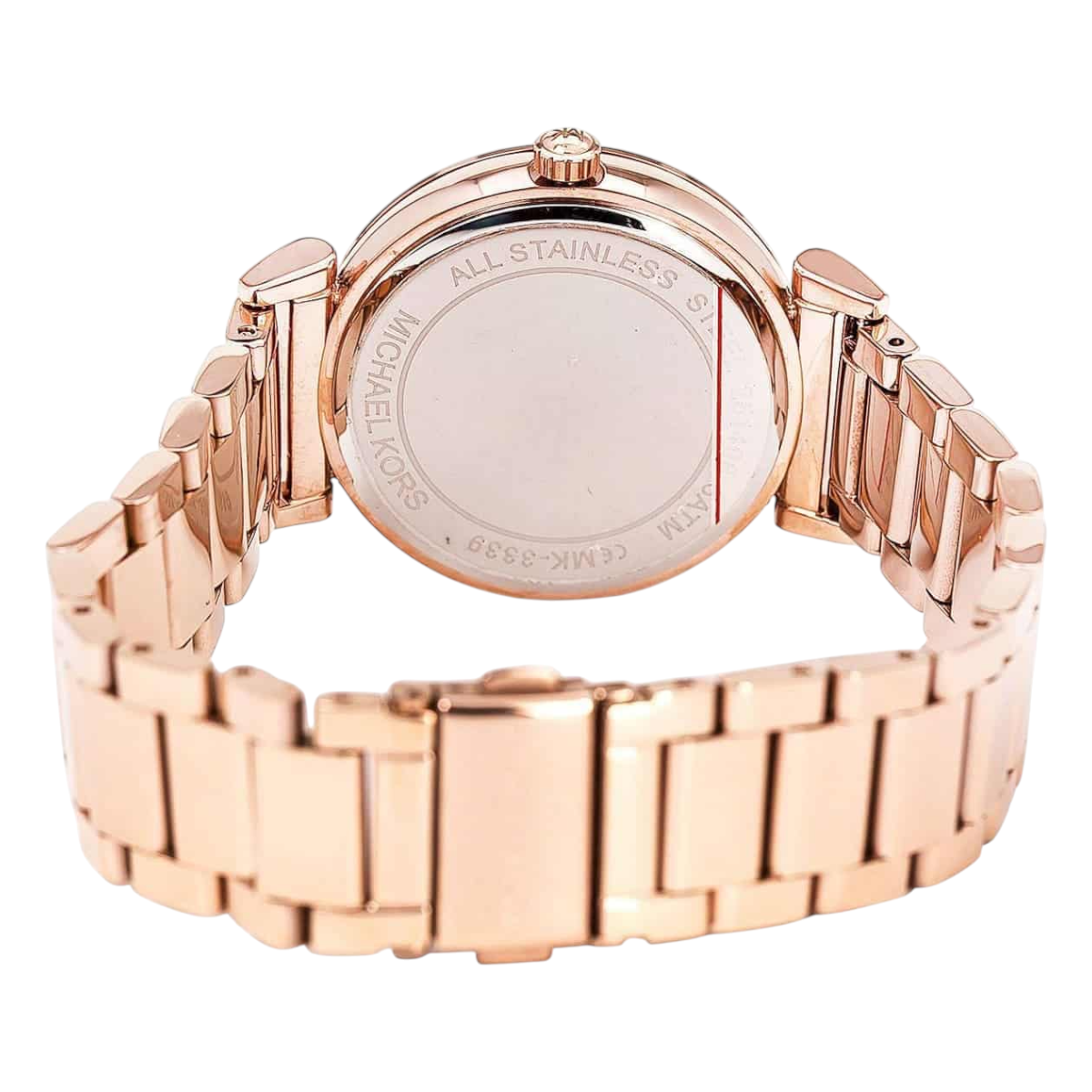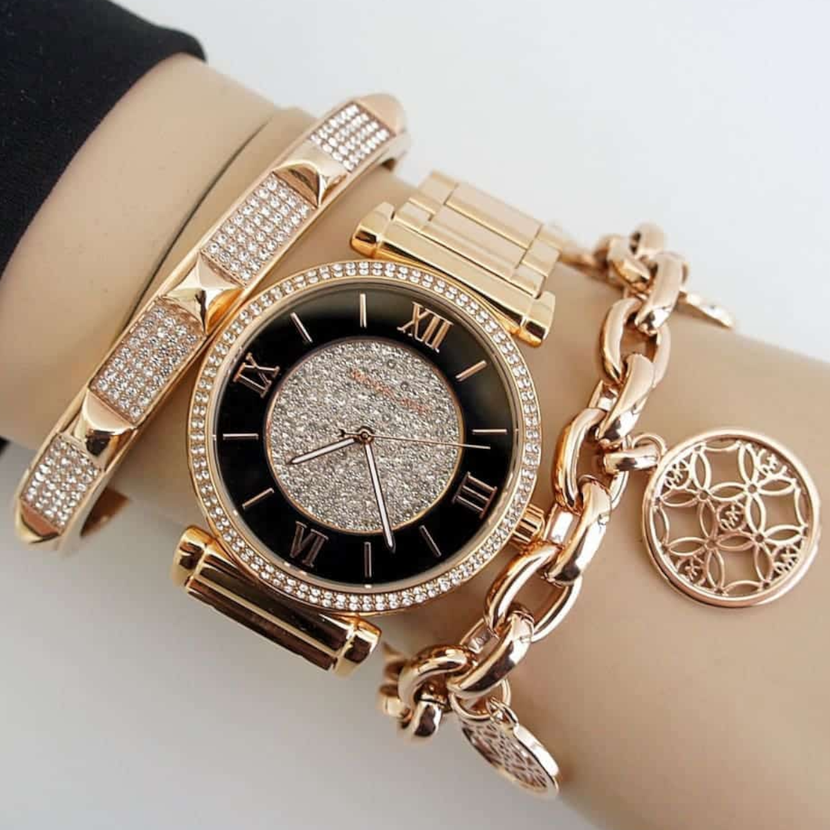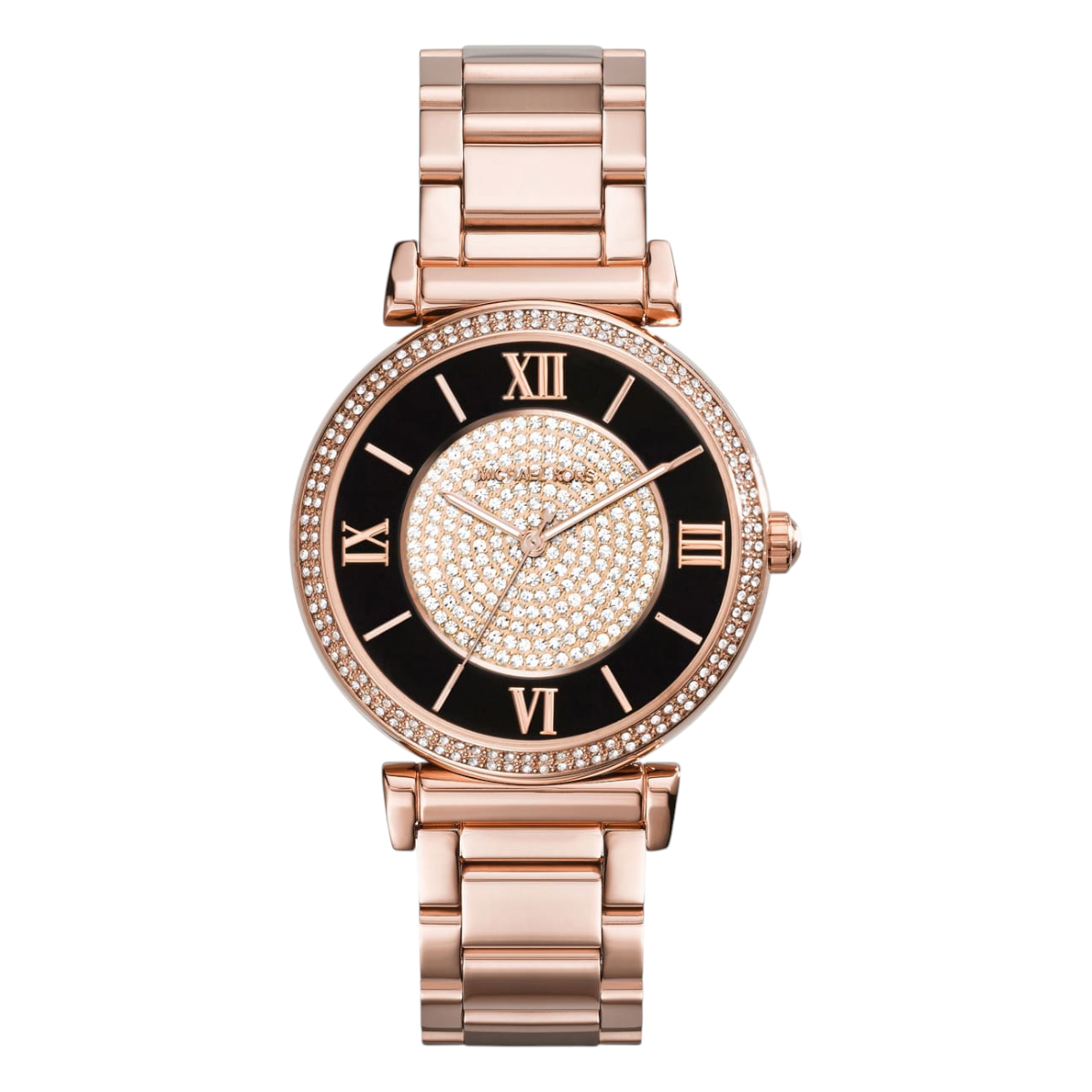 Michael Kors klocka dam Classic Ref.nr MK3339 är en damklocka som kombinerar ett tydligt formspråk med ett mer dressat uttryck för daglig användning. Den svarta urtavlan tillsammans med roséguldstonad boett och länk skapar en balanserad kontrast där kristaller runt bezeln och romerska siffror ger ett diskret dekorativt inslag och en klassisk känsla. Som michael kors klocka dam fungerar modellen väl i arbete, vid resor och i sociala sammanhang där en stilren och lättburen klocka passar naturligt.