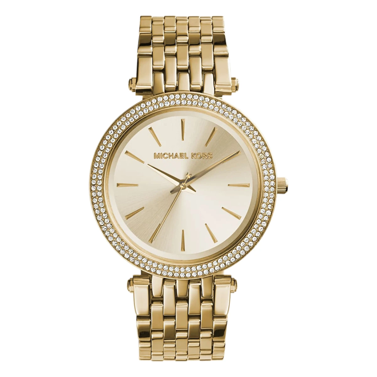 Michael Kors klocka dam guld med glittrande detaljer och en varm guldfärgad design som ger ett tydligt men balanserat uttryck. En damklocka som passar både vardag och mer uppklädda tillfällen.