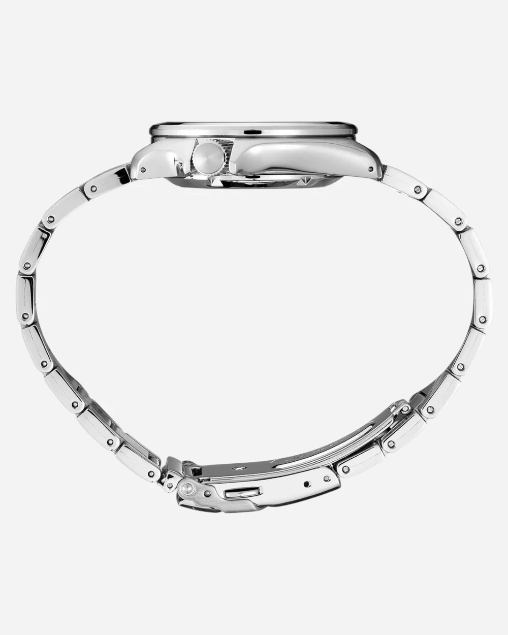 Seiko 5 Sports SRPE53K1 är en mångsidig herrklocka i sportig och elegant design. Boetten på 40 mm i borstat och polerat rostfritt stål matchas med ett robust stålarmband och viklås för säker passform. Den blå urtavlan med självlysande index och visare ger tydlig läsbarhet även i mörker, medan den klassiska boettringen i stål framhäver klockans stilrena utseende. Klockan är utrustad med Seikos automatiska kaliber 4R36 med 24 juveler, svepande sekundvisare och en gångreserv på upp till 41 timmar. Funktionerna inkluderar veckodag- och datumvisning samt skruvkrona för extra hållbarhet. Med 10 ATM vattenskydd och Hardlex-glas är SRPE53K1 en pålitlig följeslagare för både vardag och fritid. Kombinationen av sportighet och tidlös elegans gör den till en perfekt klocka för moderna män. Levereras med 2 års garanti och originalförpackning från Seiko.