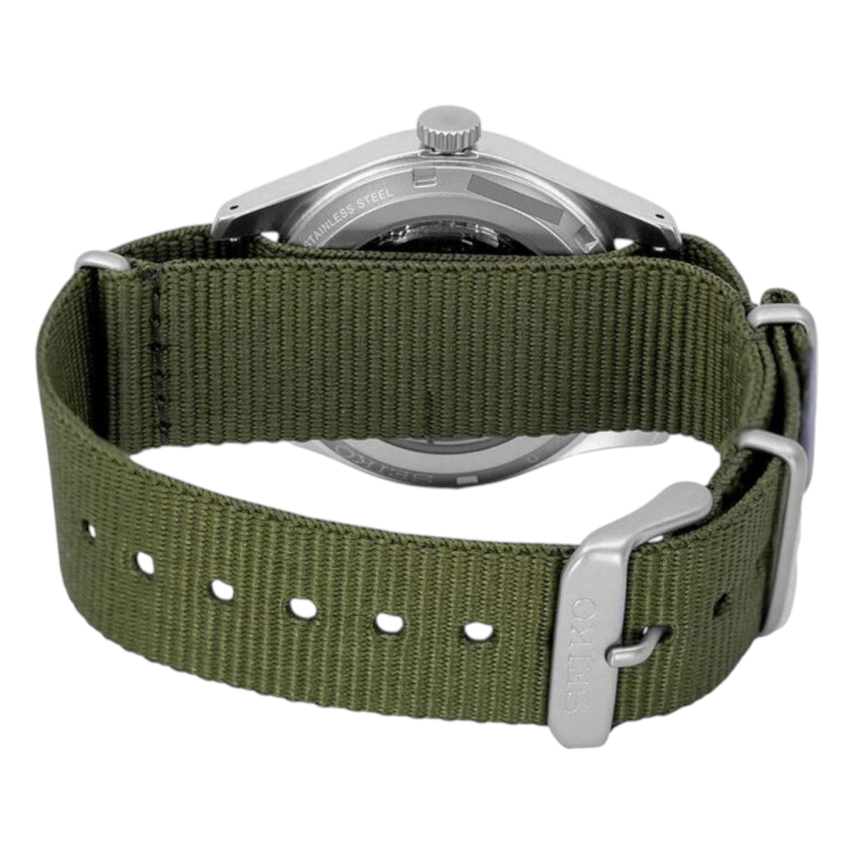 Seiko 5 Sports automatisk herrklocka med grön urtavla och textilarmband är en lätt och funktionell modell för daglig användning.