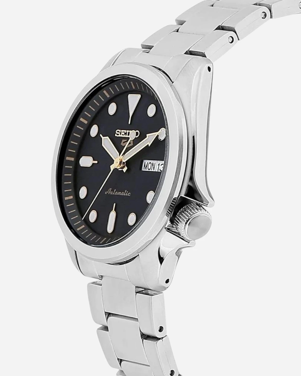 Seiko 5 Sports SRPE57K1 är en elegant och sportig herrklocka som kombinerar tidlös design med pålitlig Seiko-teknologi. Boetten på 40 mm i borstat och polerat rostfritt stål ger en balanserad storlek som passar både till vardags och vid mer formella tillfällen. Den svarta urtavlan med självlysande index och visare ger hög läsbarhet, medan det robusta stålarmbandet med viklås ger komfort och säkerhet. Klockan är utrustad med Seikos automatiska kaliber 4R36 med 24 juveler, svepande sekundvisare och en gångreserv på upp till 41 timmar. Funktionerna inkluderar veckodag- och datumvisning, samt ett Hardlex-glas som ger extra skydd mot repor. Med 10 ATM vattenskydd är SRPE57K1 både tålig och mångsidig, perfekt för vardagsbruk och lättare sportaktiviteter. Kombinationen av klassisk estetik, robust konstruktion och teknisk precision gör den till ett attraktivt val för moderna män. Levereras med 2 års garanti och originalförpackning från Seiko.