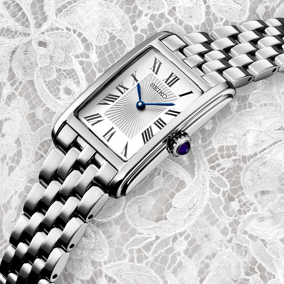 Seiko classic dam i Classic-serien med vit tavla, stållänk och 22 mm format. Quartzklocka i rostfritt stål med Hardlexglas och 5 ATM.