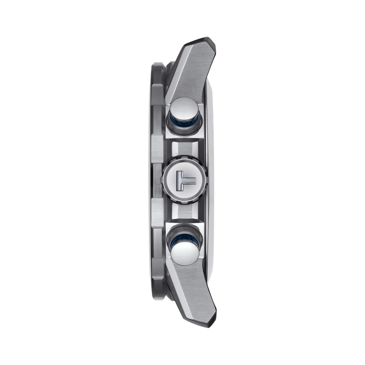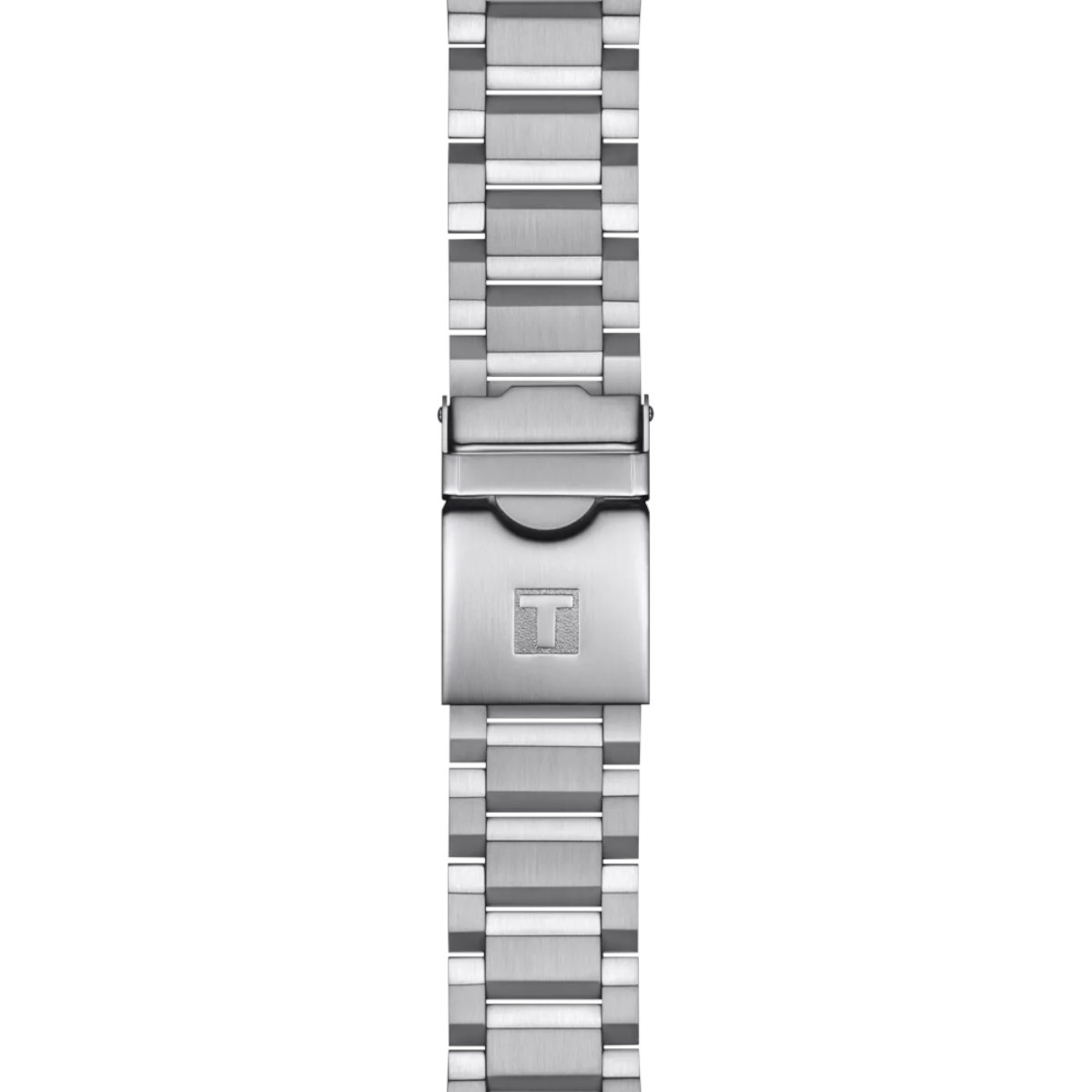 Den blå urtavlan skapar tydlig kontrast mot boett och länk i rostfritt stål, vilket ger modellen ett balanserat men markerat helhetsintryck. Som tissot chronograph får klockan extra visuell struktur genom subdials, tydliga index och en uppbyggnad som lyfter fram läsbarhet och sportig identitet utan att kännas rörig.