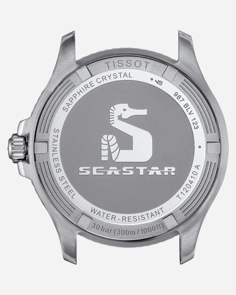 Tissot Seastar 1000 Blå/Stål 40 mm är en robust och elegant dykarklocka från Tissots välkända Seastar-kollektion. Boetten på 40 mm är tillverkad i 316L rostfritt stål med borstad och polerad finish, kombinerad med ett stålarmband och fällbart lås för säker passform. Den blå urtavlan har självlysande index och visare för optimal läsbarhet, kompletterad av en blå bezel. Klockan drivs av ett pålitligt ETA F06.412 Swiss Made Quartz-urverk och har funktioner som datumvisning och skruvkrona. Med ett imponerande 30 ATM vattenskydd (300 m) och reptåligt safirglas är modellen byggd för både vardagsbruk och professionell dykning. Med en tjocklek på 10 mm och armbandsbredd på 20 mm sitter den bekvämt på handleden. Levereras med 2 års internationell garanti och originalförpackning från Tissot.