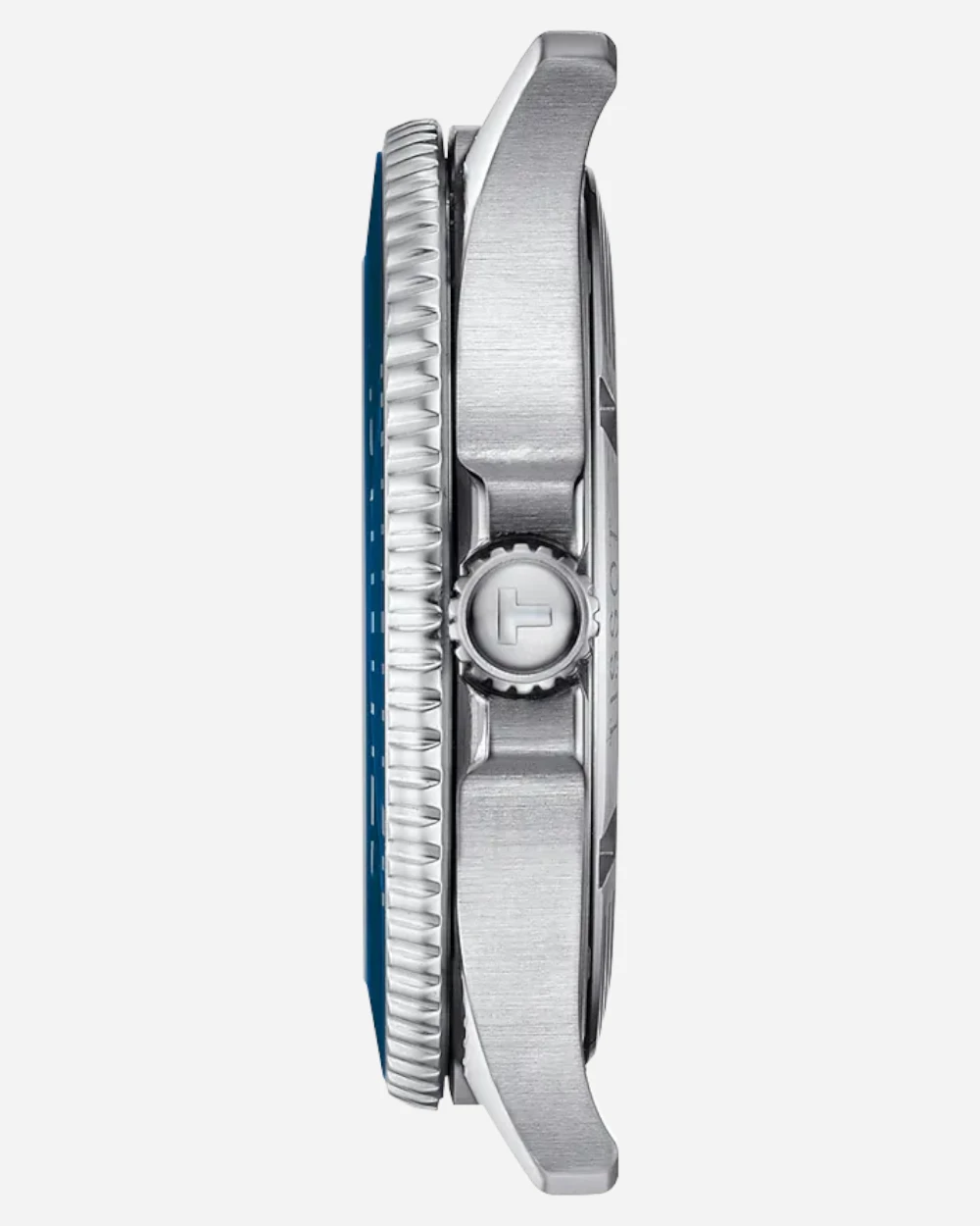 Tissot Seastar 1000 Blå/Stål 40 mm är en schweizisk herrklocka i rostfritt stål med blå urtavla och vridbar bezel. Utrustad med ETA F06.412 quartz-verk, datumfunktion, safirglas och 30 ATM vattenskydd – en sportig och pålitlig dykarklocka.