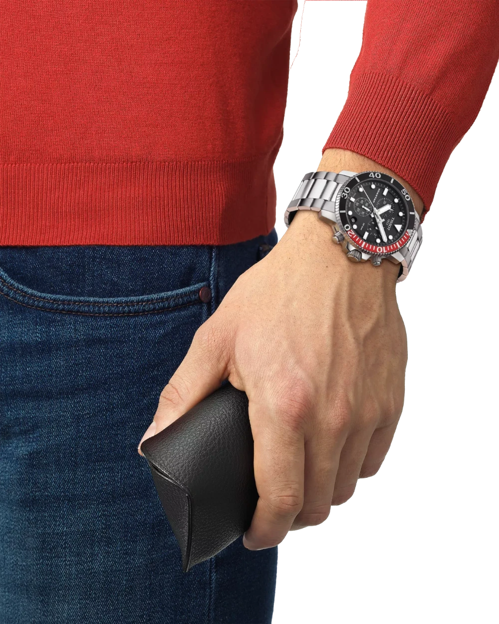 Tissot Seastar 1000 Svart/Stål 45.5 mm är en professionell dykarklocka från Tissots populära Seastar-serie. Boetten på 45.5 mm i 316L rostfritt stål har en borstad/polerad finish och kombineras med ett matchande stålarmband med viklås. Den svarta urtavlan är utrustad med självlysande index och visare som ger tydlig läsbarhet i alla ljusförhållanden. Bezeln är flerfärgad i aluminium, vridbar motsols och konstruerad för dykning. Klockan drivs av ett pålitligt ETA G10.212 Swiss Made Quartz-urverk och erbjuder funktioner som kronograf, separat sekundvisning, datumvisning och skruvkrona. Med ett imponerande 30 ATM vattenskydd (300 m) och reptåligt safirglas är modellen byggd för att klara både vardag och professionell dykning. Med en tjocklek på 12.8 mm och vikt på 180 g sitter den stabilt på handleden och kombinerar sportig prestanda med elegant design. Levereras med 2 års internationell garanti och originalförpackning från Tissot.