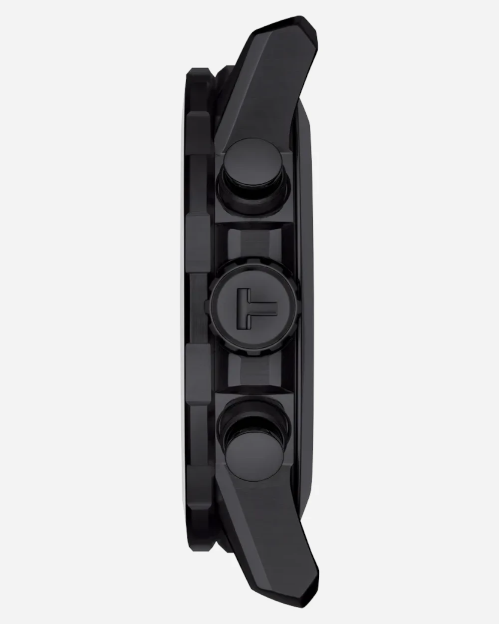Tissot T-Sport Svart/Stål 45.5 mm är en robust och sportig modell från Tissots populära T-Sport-serie. Boetten på 45.5 mm är tillverkad i 316L svart PVD-belagda rostfritt stål och kompletteras av ett matchande svart stålarmband med viklås. Den svarta urtavlan har lysande index och visare för hög läsbarhet även i mörker, medan den svarta bezeln i aluminium ger en modern look. Klockan drivs av ETA G10.212 Swiss Made Quartz-urverk och är utrustad med kronograf, separat sekundvisning, tachymeter samt datumvisning. Med 10 ATM vattenskydd och reptåligt safirglas är modellen både tålig och praktisk för vardag och sport. Med en tjocklek på endast 11.9 mm och en vikt på 188 g är den bekväm på handleden samtidigt som den gör ett kraftfullt intryck. Levereras med 2 års internationell garanti och originalförpackning från Tissot.